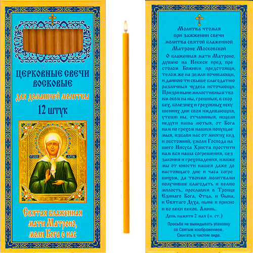 Церковные свечи для домашней молитвы, содержание воска 50%,